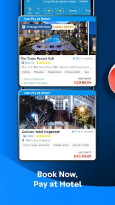 Traveloka has everything sorted out, from budget-friendly up to luxurious 5-star hotels, all-inclusive resorts, cosy villas, glamping spots, apartments, and other stays! Browse over 100,000 hotels worldwide with daily hotel deals, including popular options like Accor and Ibis. Pay at Hotel and Pay Near Stay Date options allow you to book accommodations at the last-minute.